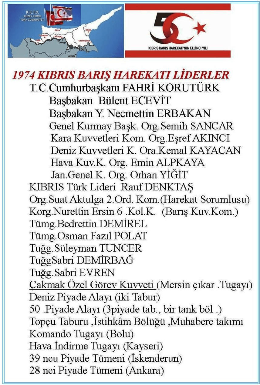 Ancak yıllar sonra bile Rum- Yunan ikilisinin Türkiye’den toprak kazanma ve entrika stratejileri hiçbir zaman ortadan kalkmadı.Kıbrıs Harekatının 50. Yıldönümü (20 Temmuz 1974) ile Kıbrıs’ın Fethinin 453.yıldönümlerinde bir kez daha (1960 ‘lar da Türk Gençliğinin sahip çıktığı gibi) haykıralım ki “KIBRIS BİZİMDİR” ve öyle de kalmalıdır.
