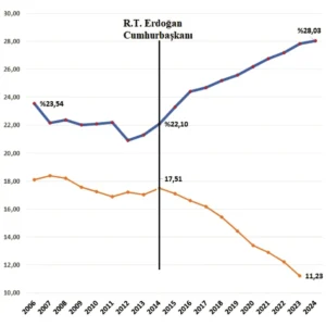 2014 sonrası ve asıl 2017 sonrası biz aşırı refah artışı mı yaşadık da Avrupa ortalamasının bile altına gelmiş oluyoruz?
