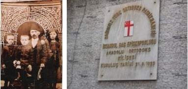 Solda, Karamanlı bir baba ve çocukları gitmeden az evvel resim çektirmişler. Arkada Anadolu Hatırası yazıyor. Sağda Türk Ortodoks Patrikhanesi tabelası.