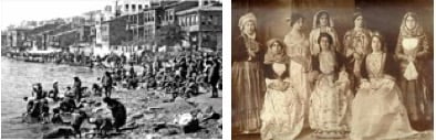 Karamanlı Rumlar, kendilerini Yunanistan’a götürecek gemiyi beklerken. Sağda, Karamanlı Rum kadınları.