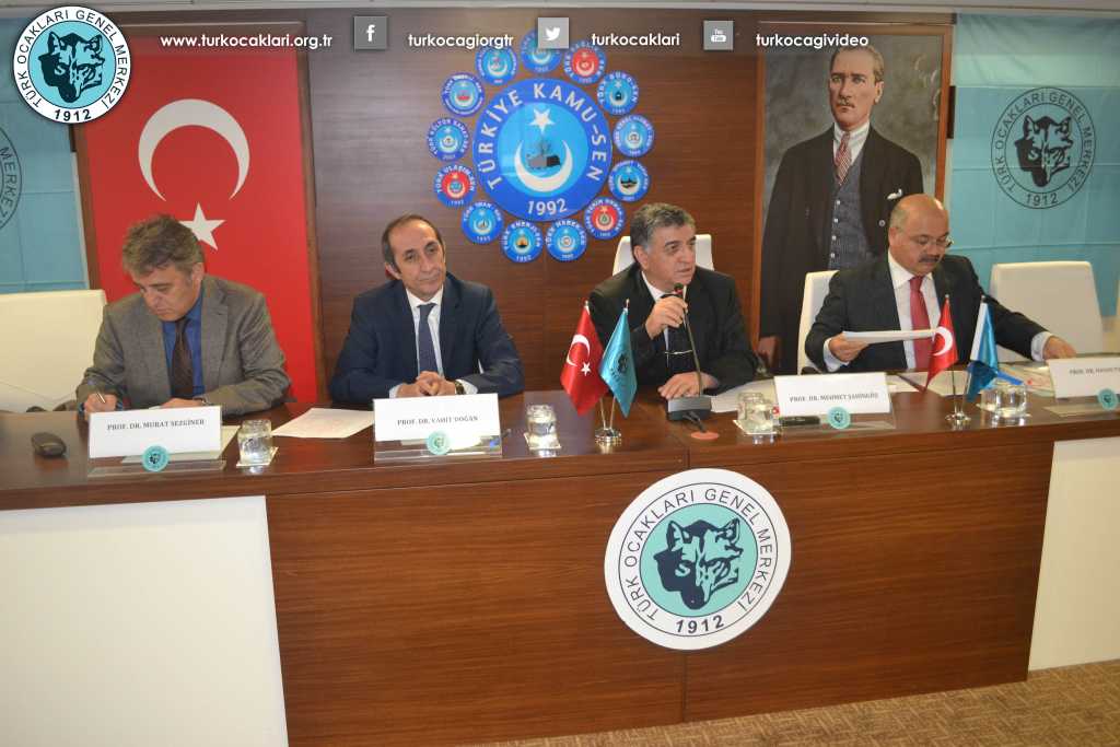 Türk Ocakları Genel Merkezi ve Türkiye Kamu-Sen işbirliğiyle düzenlenen “Anayasa Yenileme Sürecinde Türkiye ve Tehditler” isimli panelde anayasa yenileme sürecinde anadilde eğitim, hükümet sistemi, vatandaşlık ve Türklük kavramı konuşuldu. Oturum başkanlığını Türk Ocakları Genel Sekreteri Prof. Dr. Mehmet Şahingöz yaptığı panele, Gazi Üniversitesi Hukuk Fakültesi Emekli Öğretim Üyesi Prof. Dr. Hasan Tunç, Gazi Üniversitesi Hukuk Fakültesi Öğretim Üyesi Prof. Dr. Murat Sezginer ve Gazi Üniversitesi Hukuk Fakültesi Öğretim Üyesi Prof. Dr. Vahit Doğan katıldı.