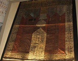 Hutbe’nin sağ tarafında yüksekçe bir yere asılan siyah örtü, Kabe kapısının örtüsüdür. Mısır Seferi’nden sonra halife olan Yavuz Sultan Selim, Mekke’de onarıma girişmiş, bu arada Kabe’nin örtüsünü İstanbul’dan gönderilen yeni örtü ile değiştirmiştir. Yavuz, eski örtüyü ise Bursa’ya getirtip Ulu Cami’ye hediye etmiş ve kendi elleri ile taşıyıp asmıştır. Saf altın iplik ile üzerine ayetler işlenmiş bu örtü, yüzyıllar boyu kararmadan kalmıştır ;ancak yapılan bazı hatalı restorasyonlar sonucu caminin rutubet alması üzerine işlemeleri dökülmüş olduğundan günümüzde ayetler ancak parlak ışık altında görülebilir.
