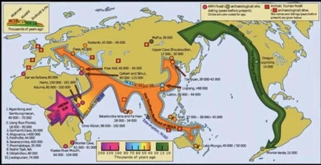 Yaklaşık 150.000 yıl önce Doğu Afrika, Arap yarımadası ve Avrasya’da yaşayan çok sayıda homo sapiensin varlığı yapılan çalışmalarla kanıtlanmıştır.