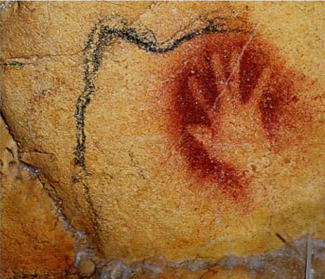 - Güney Fransa’daki Chauvet-Point-d’Arc Mağarası’nın duvarında yer alan insan eli izi 30.000 yıl öncesine aittir ve “ben buradayım” demek istemiştir.