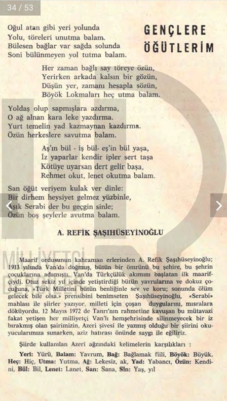 Efendim bir babanın1959 senesinde oğluna basiretiyle ferasetiyle hayata ilişkin zengin dersler içeren bir mektubu. Bu mektup Van’da o dönemin insanlarının eğitime verdiği önemi de göstermektedir. Bu önemi kavramanın takdirini size bırakıyorum. Bu şehrin irfanına ve kültürüne Refik Şaşıhüseyinoğlu ve Evlatlarının verdiği emeği tahattür etmek bizim borcumuz. Onları rahmetle ve mihnetle yâd ediyorum. Hayfa ki yaşım ve idrakim kemale erdiğinde onlar bu dünyadan çekip gitmişlerdi. Şimdilerde böyle insanlar akademide bile yoklar. Mektup için rahmetli Demiray Şaşıhüseyinoğlu’nun kızı Begüm Selenge hocamıza teşekkür ederiz.