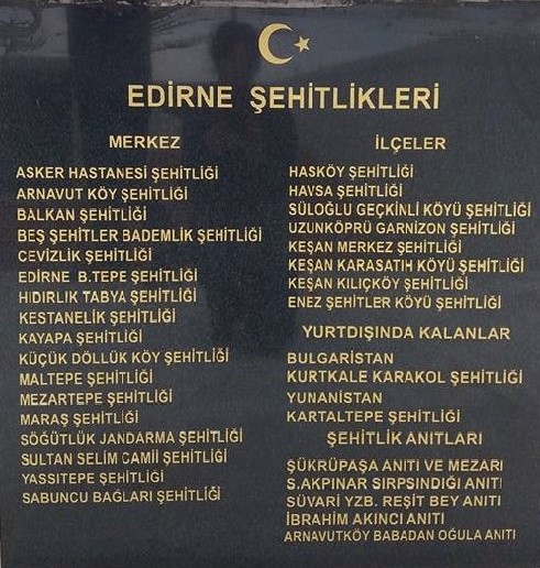 Evliyâ Çelebi’nin “Bir İslâm duvarı” diye nitelendirdiği Edirne’de Edirne merkez, ilçe ve köyleri ile birlikte toplam 25 şehîdlik bulunmaktadır. Bunların en büyüğü olan Edirne Asker Hastahânesi Şehîdliği elli iki bin şehîdiyle Çanakkale’den sonra en büyük şehîdliktir.
