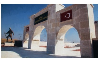 Faruk Bey tam bir Türk misâfirperverliği ile bizleri Şehîd Aileleri Derneği’nde misâfir ettikten sonra: “Haydi Şehîdliğe ziyârete gidiyoruz!” diyor ve hep birlikte şehrin biraz dışarısındaki Asker Hastahânesi Şehîdliği’ne varıyoruz. Burada girişte bizleri sol tarafta göğsünü siper etmiş, sağ tarafta düsmanı gözetleyen Mehmetçik heykelleri karşılıyor. Edirne Asker Hastahânesi Şehîdliği’nin dili var, âdetâ konuşuyor bizimle, nereye baksak ecdâdımızdan haberler veriyor bizlere. Girişteki üç kemerli tâk, üç kıt’ada at koşturan ecdâdımızın azîz hâtırâlarını yâd etmek için düşünülmüş.