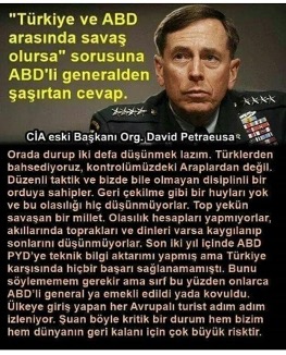 CIA eski başkanı Orgeneral Petraeussa, gazetelerde çıkan bir beyanatında şöyle diyor: