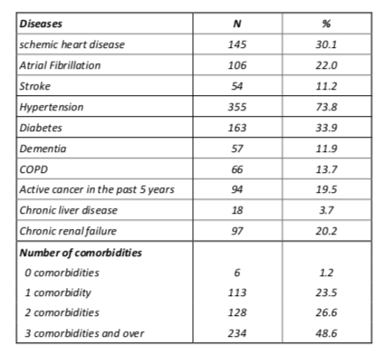 Ölenlerin 481 (tüm ölümlerin %15’i) tanesinin kayıtlarında eşlik eden diğer hastalıklarla ilgili  bilgi varmış (diğerlerinde bilgi yok).  Buna göre: