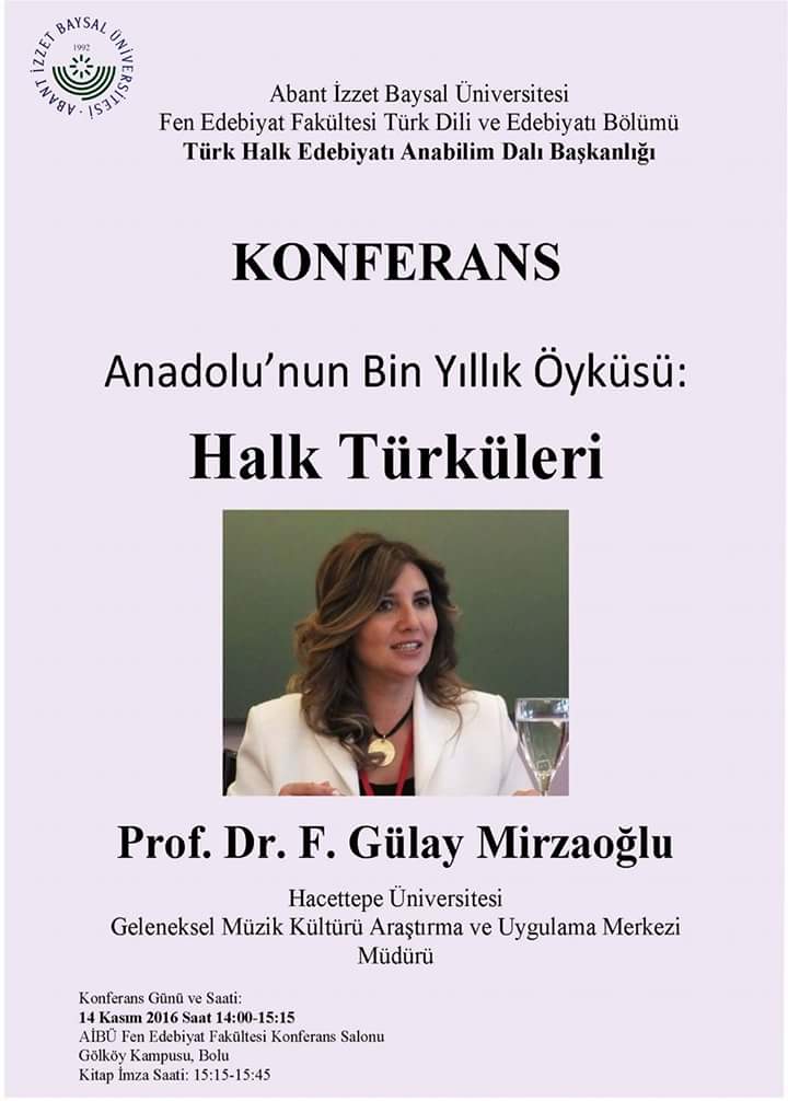 Konferans: Prof.Dr. F. Gülay MİRZAOĞLU “Anadolu’nun Bin Yıllık Öyküsü: Halk Türküleri”