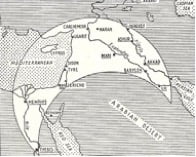 Bilindiği gibi, Basra körfezi’nden başlayıp Mısır’a uzanan hilâl biçimindeki  bölgeye Bereketli Hilâl (the Fertile Crescent) denir; Bu bölge uygarlığın beşiği kabul edilir.