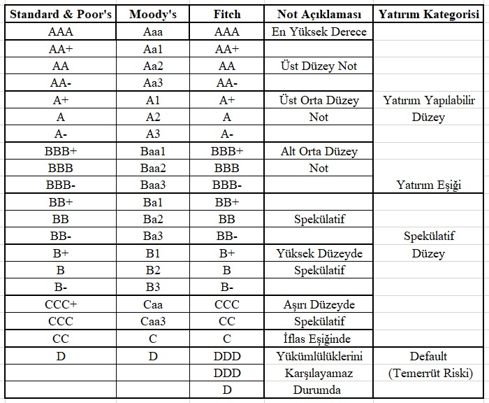 Bu yeni notun ne anlama geldiğini gösterebilmek için önce kredi derecelerini gösteren tabloya bir bakalım: