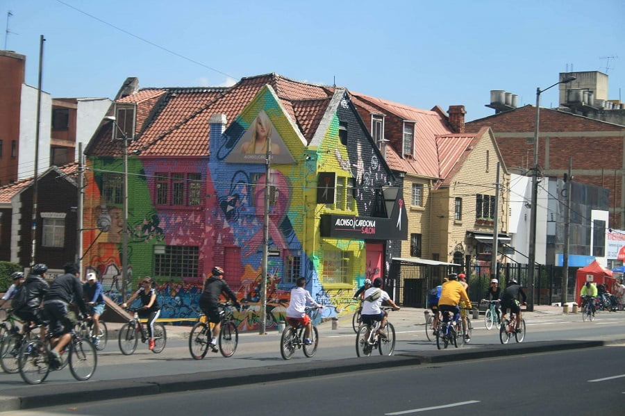 Başkent Bogota'da bisikletliler                                 Bogota'da emperyalizm karşıtı
