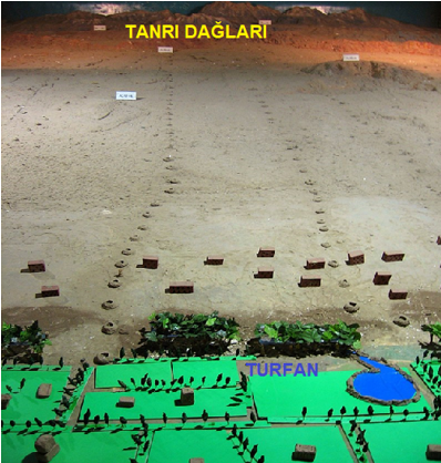 Figure 21. Sincan-Uygur Bölgesi Kariz Yeraltı Su Kanalları (Kuzeydeki Tanrı Dağlarından Güneydeki Turfan’a).