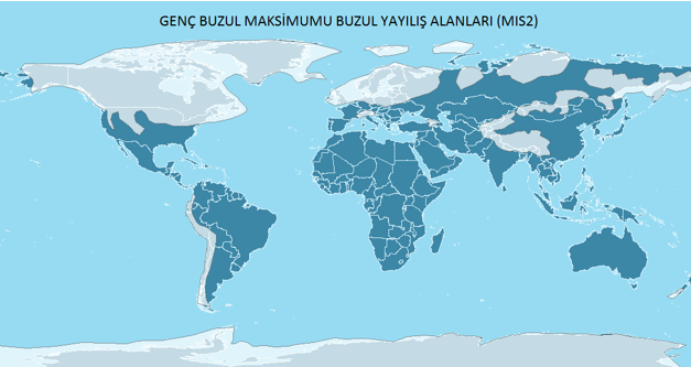 Şekil 3. Genç Buzul Maksimumu buzul yayılış alanı (20 bin yıl öncesi).