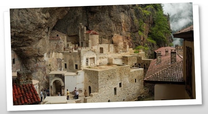 Trabzon’un Maçka İlçesinin Altındere Köyü sınırları içinde, Altındere vadisine hakim Karadağ’ın eteklerinde sarp bir kayalık üzerine kurulmuş olan Sümela Manastırı, halk arasında “Meryem Ana” adı ile anılır. Vadiden yaklaşık 300 metre yükseklikte bulunan yapı, bu konumuyla manastırların şehir dışında, ormanlarda, mağara ve su kenarlarında kurulma geleneğini sürdürmüştür.
