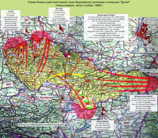 20 Ağustos’u 21 Ağustos’a bağlayan gece Sovyetler Birliği’yle birlikte Doğu Almanya, Polonya, Bulgaristan ve Macaristan birlikleri Çekoslovakya’ya girdi. Romanya işgale katılmamıştı. İşgalden birkaç saat sonra Prag’daki Çekoslovak Radyosu “Cumhuriyetin bütün yurttaşlarını barışı korumaya ve ilerleyen ordulara direnmemeye çağırdığı dörde karşı bir oyla kabul edilen, Çekoslovakya Komünist Partisi Merkez Komitesi bildirisini yayımladı. Varşova Paktı birlikleri birkaç saat içinde önemli bir direnişle karşılaşmaksızın bütün şehirleri ele geçirdi. 300 binin üzerinde askerle yapılan harekatta 100 civarında Çekoslovak hayatını kaybetmişti. 16 Ocak 1969’da Jan Palach adlı üniversite öğrencisi işgali protesto etmek için Wenceslas Meydanı’nda kendini yaktı.