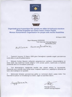 Bu çerçevede Prizren’de Hızır Aleyhiselamadına engelli yetim çocuklar için faaliyet gösteren HADER (Hıdır- Hızır)[4]diye bir dernekten bahsetmemiz gerekir. Resmiye Krasniqiadlı bir gayretli hanımefendinin işlettiği yetimhaneye Sultan Murat Kışlasında Mehmetçikten artankaravana yemeklerinden sürekli destek sağlandığını burada kayda geçirmek isteriz.