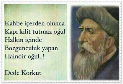 Dede Korkut kitabındaki Dirse Han Destanı’ndan bu satırlar. Büyük Türk destanının yaratıcısı oğuzların bilici ozanı Dede Korkut’un kişiliği üzerinde bilgilerimiz yetersiz kalıyor. Korkut-Ata adıyla da tanınan Dede Korkut, söylentilere göre Oğuzların Bayat boyundan Kara Hoca’nın oğludur. Onun, dokuzuncu ve Onbirinci yüzyıllar arasında Türkistan’da, Sir-Derya nehrinin Aral Gölü’ne döküldüğü yerde doğduğu, Ürgeç Dede adında bir oğlu olduğu, Oğuz Türklerinden büyük saygı gördüğü, bu bölgelerde hüküm süren Türk hakanlarına akıl hocalığı ve danışmanlık ettiği destanlarından anlaşılmaktadır. Dede Korkut’un Türkler arasında, ağızdan ağıza, dilden dile dolaşan destan niteliğindeki hikayeleri Onbeşinci yüzyılda Akkoyunlu’lar devrinde Dede Korkut Kitabı adıyla bir kitapta toplanmış, böylelikle sözden yazıya dökülmüştür. Destan derleyicisi, Dede korkut kitabının önsözünde Dede Korkut hakkında şu bilgileri verir ve onun ağzından şu öğütlerde bulunur: