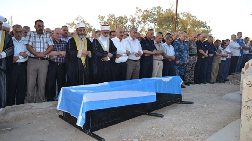 Kerkük’ün Musalla bölgesinde kılınan cenaze namazından sonra merhum Türkmen Mücadeleci Necmettin Kasapoğlu’nun cansız bedeni, 2003 yılından sonra kurduğu Irak Milli Türkmen Patisi Musalla bürosuna getirildi, cenaze buradan mezarlığa götürüldü.